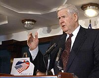 Rep. John Murtha, D-Pa. announces, at the National Press Club in Washington Friday, March 8, 2002, legislation to designate a national memorial in the southwest Pennsylvania field where hijacked United Airlines Flight 93 crashed Sept. 11. Murtha represents the area where the plane went down.